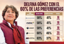 Varias casas encuestadoras colocan a Delfina Gómez como la que más apoyo tiene de las y los mexiquenses, y en los estudios de El Financiero, Meba y Enkoll, la ex Secretaria de Educación Pública mantiene un 59 por ciento de la intención del voto, sumando 18 puntos de diferencia entre Alejandra del Moral.