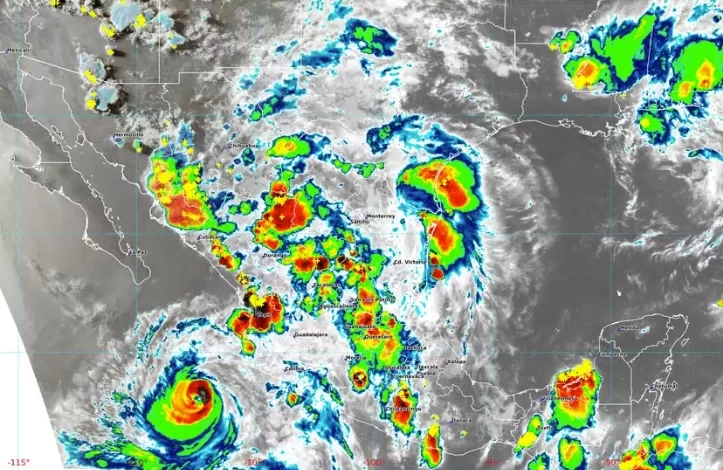 El fenómeno avanza hacia el oeste-noroeste a una velocidad de 15 kilómetros por hora, generando condiciones adversas en varias entidades del Pacífico mexicano. Se prevén lluvias torrenciales en Colima y Michoacán, e intensas en Sinaloa, Nayarit, Jalisco y Guerrero.