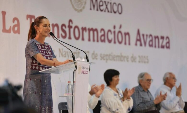 “La Cuarta Transformación es un proyecto económico, social y político, pero sobre todo es el proyecto de la dignidad del pueblo de México”, sostuvo Sheinbaum, quien también reconoció públicamente al gobernador Miguel Ángel Navarro Quintero por su gestión cercana y honesta.
