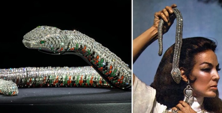 En Londres, una exhibición en el Museo Victoria & Albert reúne más de 350 piezas de la Casa Cartier, joyas prestadas por el Rey Carlos III, collares de maharajás, las famosas panteras y una impresionante colección de tiaras. Sin embargo, la verdadera estrella de la muestra es una pieza singular: la serpiente flexible que María Félix encargó en 1968 a los renombrados joyeros franceses.