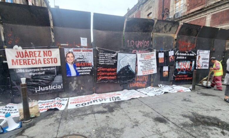 El colectivo “Justicia para nuestros deudos” realizó una manifestación en el exterior de Palacio Nacional para solicitar a la presidenta Claudia Sheinbaum que atraiga el caso, ante el silencio institucional de la gobernadora María Eugenia Campos para ocultar información, ignorar a las familias, cometer irregularidades y brindar una posible protección a los responsables.