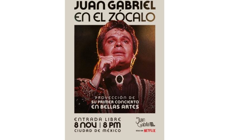 El próximo 8 de noviembre, el Zócalo de la Ciudad de México se llenará de la música y el legado de Juan Gabriel, gracias a una colaboración entre Netflix y la Secretaría de Cultura de la Ciudad de México. La proyección será un homenaje al Divo de Juárez, donde se exhibirá su primer concierto en Bellas Artes, realizado en 1990, el cual incluirá imágenes inéditas tomadas de la serie documental Juan Gabriel: Debo, puedo y quiero, que se estrena en Netflix el 30 de octubre bajo la dirección de María José Cuevas.