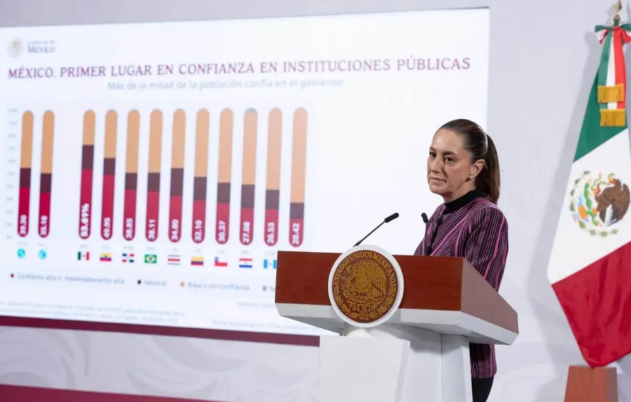 “La encuesta muestra que, al ser preguntados sobre su nivel de confianza en las instituciones, los mexicanos son los que más confianza depositan en ellas en comparación con otros países de la región”, explicó Sheinbaum.