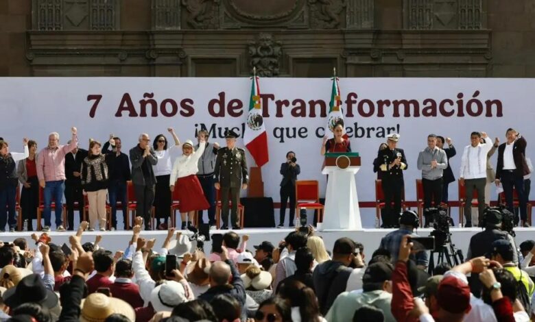 Durante la conmemoración por los siete años de los gobiernos de la Cuarta Transformación, la presidenta Claudia Sheinbaum Pardo afirmó que el proyecto político que encabeza se sustenta tanto en referentes históricos como en la premisa central de la 4T: “¡Por el bien de todos, primero los pobres!”.