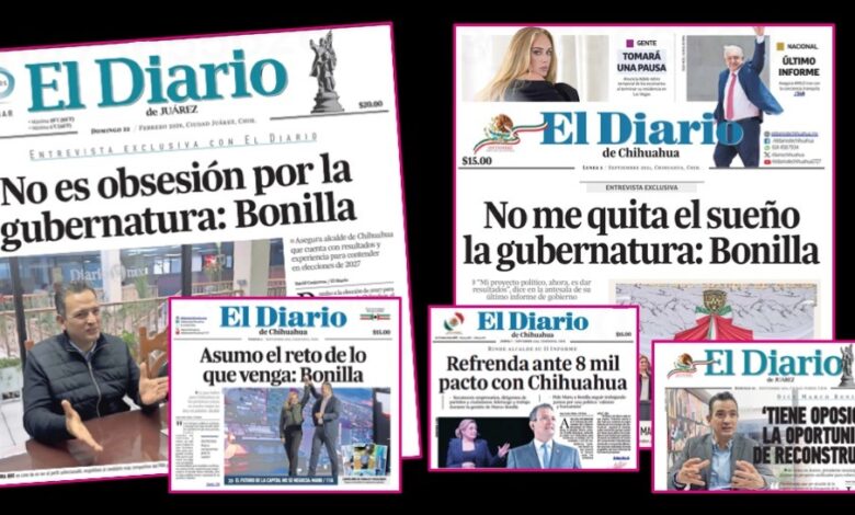 El Diario de Juárez y El Diario de Chihuahua publicaron en sus ediciones impresas una supuesta “entrevista exclusiva” con el alcalde panista, con el siguiente titular de portada: “No es obsesión por la gubernatura: Bonilla”.
