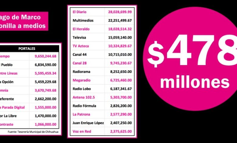 - El monto incluye convenios con la mayoría de medios impresos, digitales, radio y TV en la ciudad de Chihuahua, así como pauta en las principales redes sociales, producción audiovisual, renta de espectaculares y agencias de marketing.