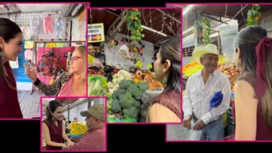 La senadora Andrea Chávez recibe amplias muestras de apoyo a su trabajo, durante un recorrido en el mercado del Centro…